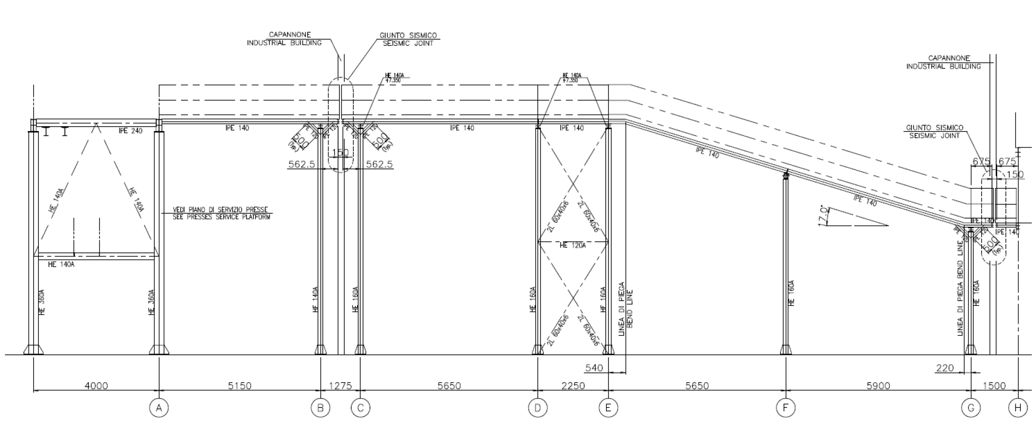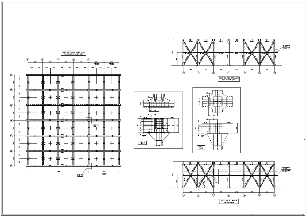 E’ un progetto bidimensionale preliminare di una struttura in cui sono specificati le tipologie dei profili da utilizzare e gli ingombri strutturali.