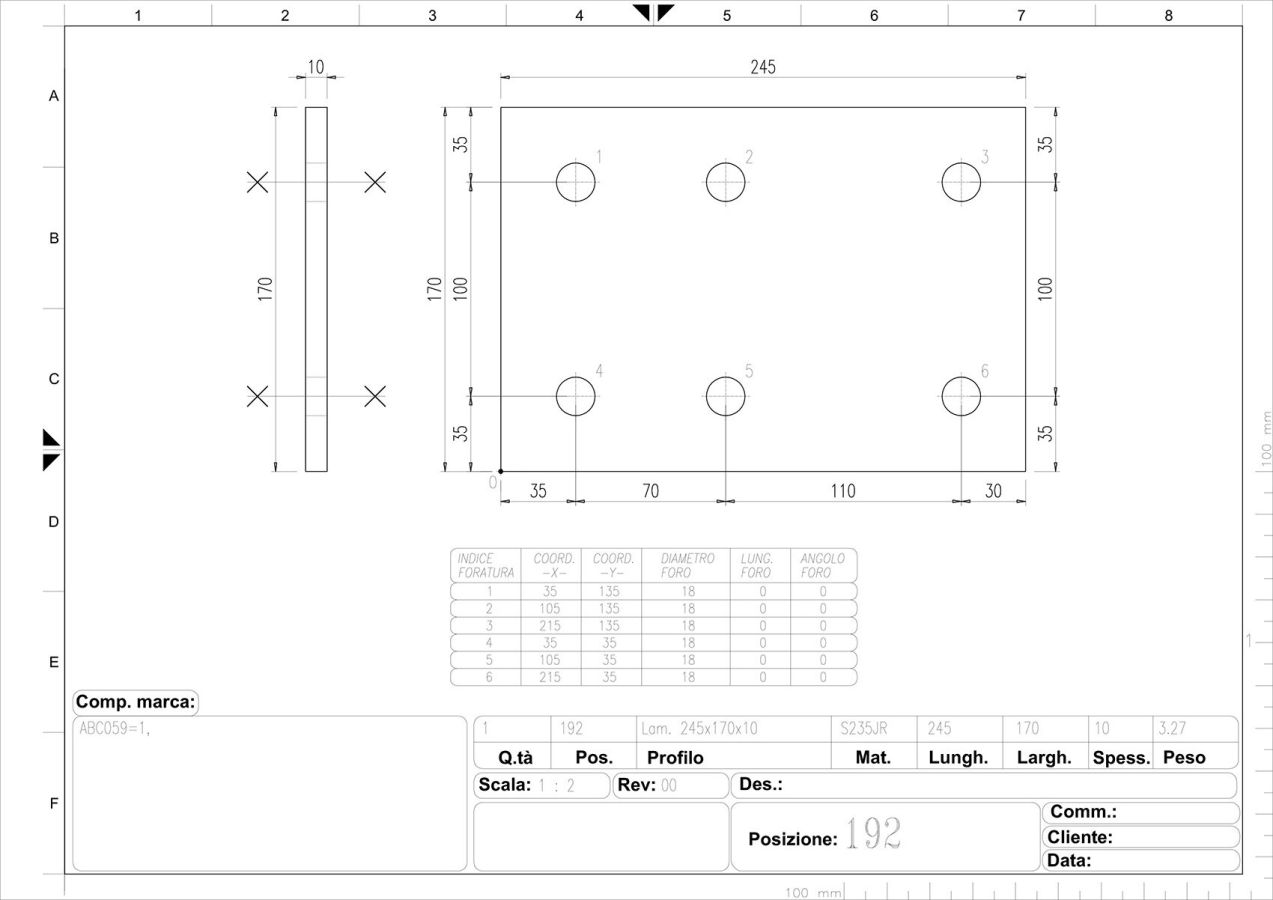 realizzazione dello stesso, tipologia di materiale (profilo, piastra…), dimensioni, qualità del materiale, eventuali forature, smussi, raccordi o altro.